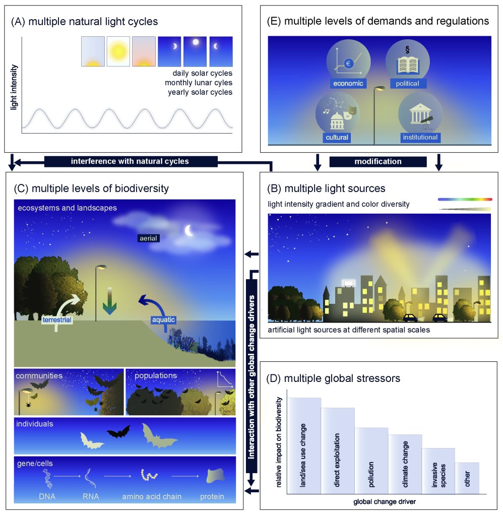 For the article 11 Pressing Research Questions on How Light Pollution Affects Biodiversity by Franz Hölker, Janine Bolliger, Thomas W. Davies, Simone Giavi, Andreas Jechow, Gregor Kalinkat, Travis Longcore, Kamiel Spoelstra, Svenja Tidau, Marcel E. Visser and Eva Knop.