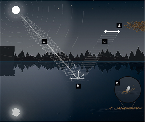 Bridge illumination gave rise to night-time illuminated paths across aquatic systems. However, if bridge artificial light at night reach waterbodies, it can result in polarised light pollution, which might alter the optical conditions of a river by night and potentially interfere with moonlight polarisation signals reflected off the water’s surface. It is a night-time phenomenon that can detrimentally change the behaviour of organisms sensitive to horizontally reflected polarised moonlight, a navigational cue and signal known to be used by flying water-seeking insects to detect suitable aquatic habitats to reproduce and lay eggs.