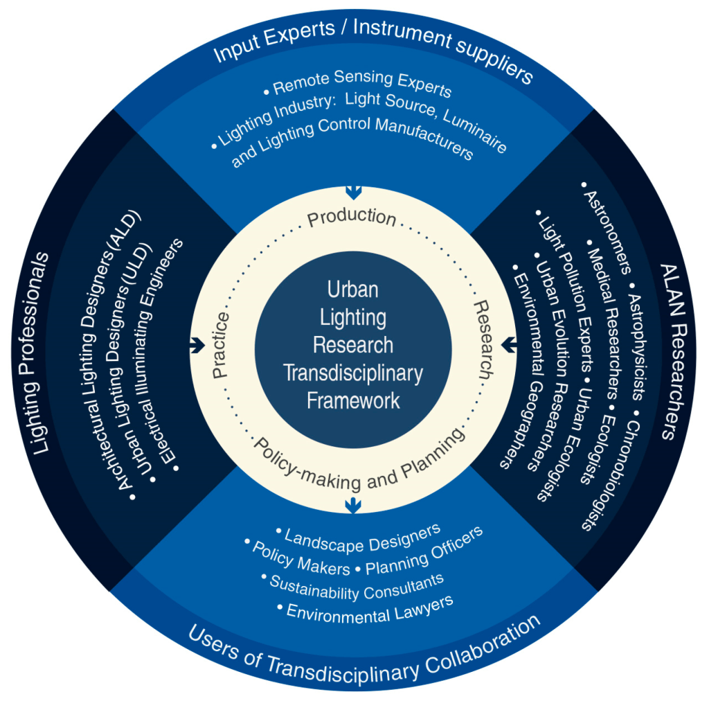 • A collaborative framework involving a transdisciplinary process with lighting professionals to potentially bring the practice, research, production, decision-making, and planning closer to each other.
