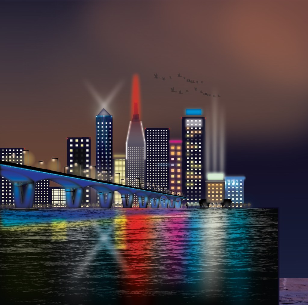 Illustration on the evolution of night-time illumination showing the varied approaches of artificial lighting used to deliver illuminated night-time scenarios in built and natural landscapes.
